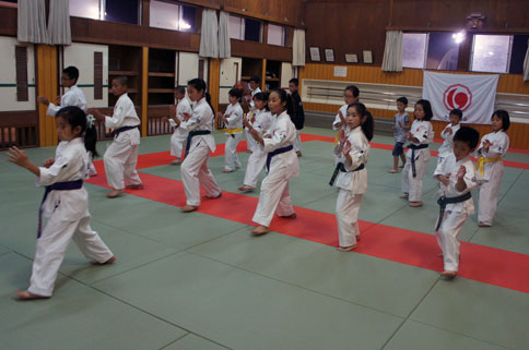 稽古の締めは、コタロー指導員の号令で気合いの十本突き。