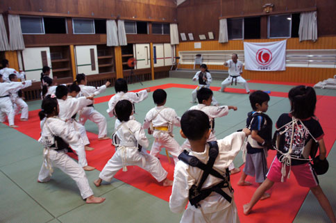 少年部稽古の締めは、小学校四年生のあいこの号令で、気合いの十本突き。