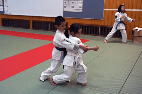 少年部稽古終了後の自主練習。