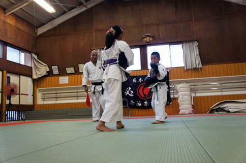 道場開場、稽古前のひととき。稽古前の自主練習。
