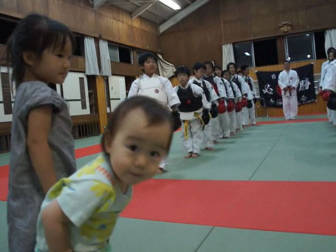 夏休みになって、少年部稽古終了後の、居残り自主練習組の子ども達が増えました。