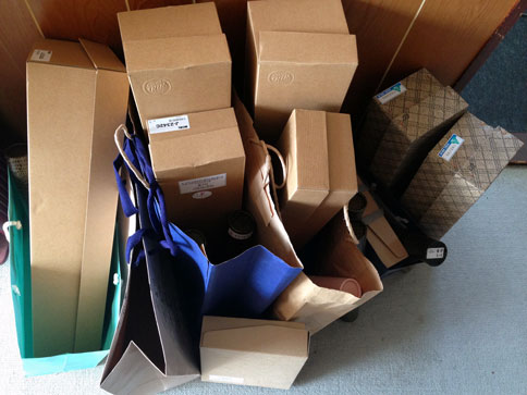 愛媛新聞に大会記事が掲載された後、コピーを持って学校表彰のお願いに行こうと、入賞した子ども達から預かっている賞状とトロフィーの山です。気になってしょうがない。(笑)