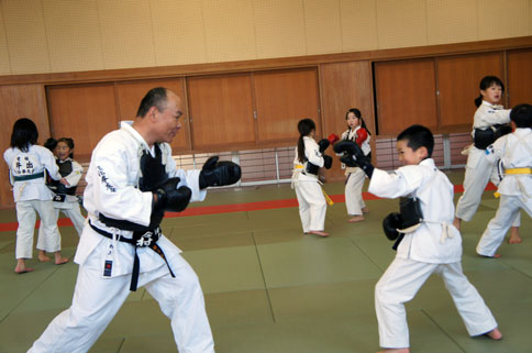 防具練習。「一人で五人分の気合い!」がモットーの小学校二年生のコタロー指導員と対決。