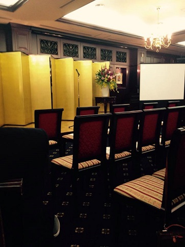 事前登録で代理出席不可、会議中が写真撮影、録音禁止、会議室の外には警護に就くSP。
