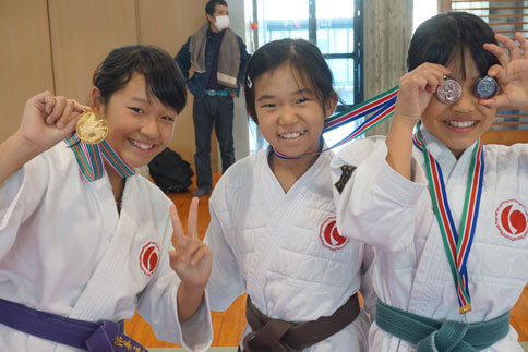 今治拳友会女子組、素敵な笑顔で「はい!ポーズ!」