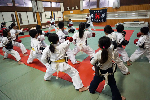 初めての日本拳法体験 幼稚園組年中さん、めい。