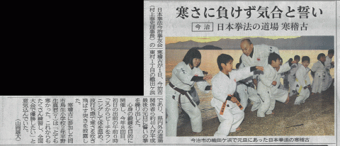 今治市の織田ケ浜で元旦にあった日本拳法の寒稽古