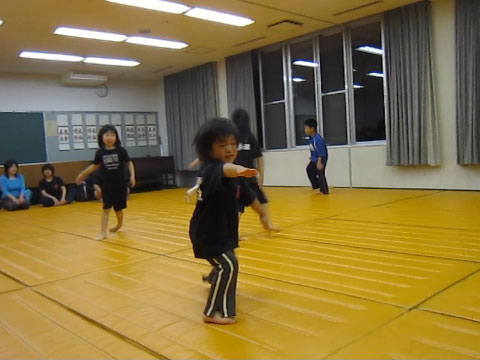 やる菌トリオの小学一年生のR香とコタロー指導員のペアー、皆の前でお手本。(#^.^#)