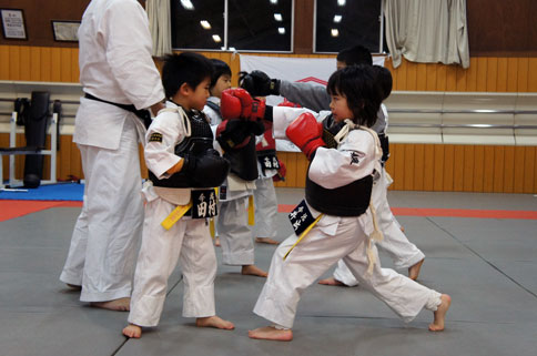 小学生・中学生までは、面無し防具試合で行います。投げ・逆捕りはありません。