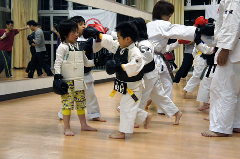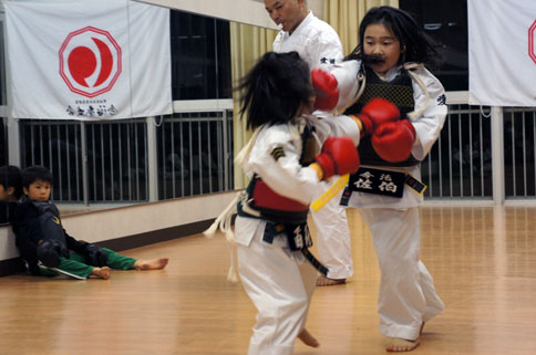 見学体験組の小学生の男の子一名、最初は恥ずかしがって中に入って来れませんでしたが、防具練習から参戦しました。流石男の子、中に入ると生き生きとしていました。(笑)