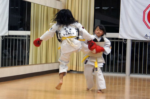 小学校新四年生のあかねの必殺技は、名付けて「必殺真空飛び蹴り!」(笑)