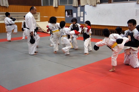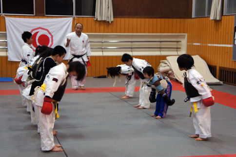 少年部の稽古終了後、終礼で稽古を一旦締めます。