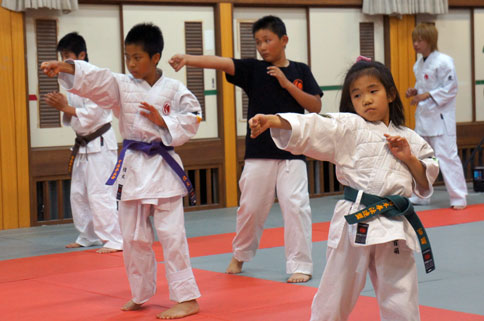 稽古の締めは、コタロー指導員のどや顔の気合いの十本突き。