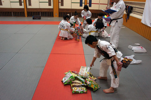 少年部稽古終了後、出席を確認した後は、頑張った子ども達のご褒美タイム。