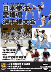 | |愛媛県連盟 (Ehime)|日本拳法 (Kempo)|形 (Kata)|組織 (Org)|道場案内 (Dojo)|活動紹介 (Intro)| |活動報告 (Report)|活動記録 (Record)|募集案内 (Recruit) |関連グッズ (Goods)|(Gallery)| |