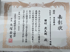 | [優秀スポーツ選手賞]全国大会部門 (全国大会で優勝したもの) 今治拳友会 田村虎太郎 第28回全国高等学校日本拳法選抜大会 男子個人競技 第1位 |