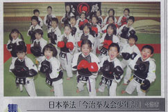 愛媛勢では今治拳友会の3人が入賞。男子小学2年の部に出場した田村虎太郎が2年連続優勝、女子小学3年の部の井出七星が初優勝を果たした。同6年の佐伯朱音は3位に入った。 |