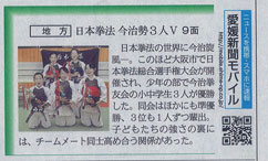 大阪市でこのほど開催された日本拳法総合選手権大会(日本拳法全国連盟主催)少年の部で、今治市の今治拳友会に所属する市内の小中学生3人が見事優勝を果たした。