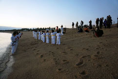 初参加の乃万小学校2年井手虹花さん(8)は「砂が冷たく、はだしでの稽古は大変だった。今年は四国大会で優勝して全国へ出場したい」と話していた。
