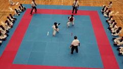 | 鍛錬した技をぶつけ合う日本拳法の選手 今治市営中央体育館 |