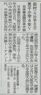 | 【小学5年生男子】優 勝 田村 虎太郎 【小学4年生女子】優 勝 井手 虹花 【小学1年生男子】優 勝 平野 生真 【小学3年生女子】準優勝 中川 はるか 【中学3年生女子】準優勝 佐伯 朱音 【小学校5年生男子】49人エントリー ・水本 康太 (予選リーグ1位、決勝トーナメント進出 ベスト16) ・園畠 幸之介 (予選リーグ1位、決勝トーナメント進出 ベスト16) |