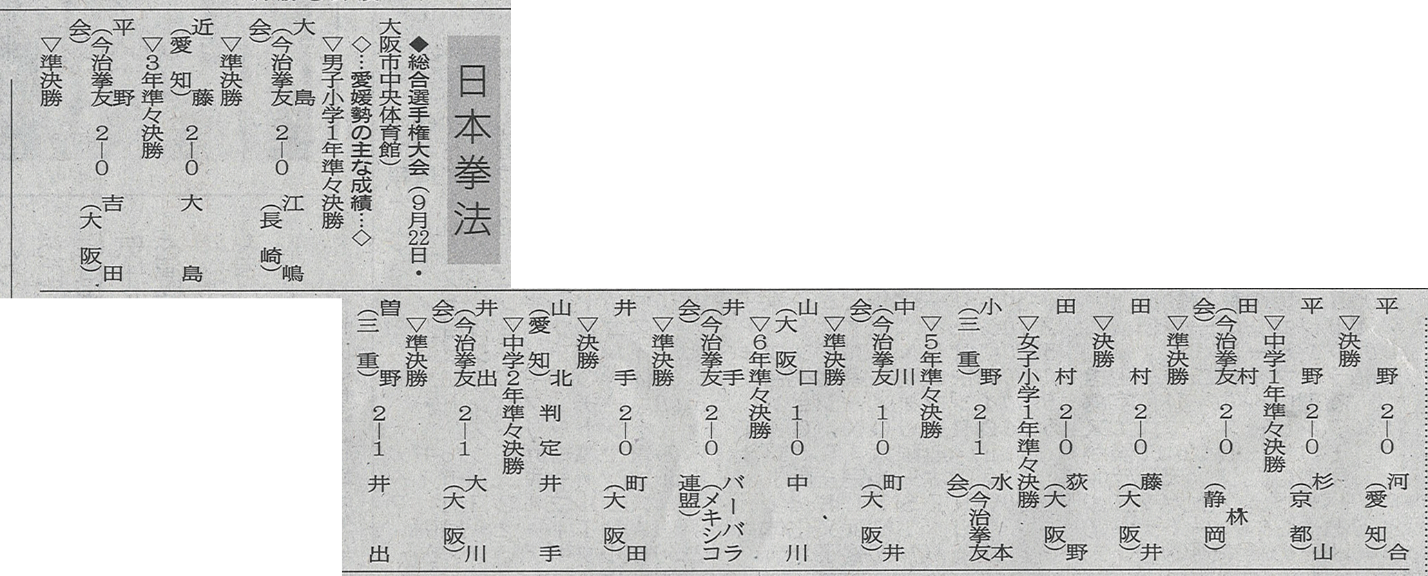 | 第2回日本拳法全国少年大会・個人戦 第17回日本拳法全国少年大会・団体戦 |